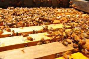 In a recent post I cautioned beekeepers about robbing behavior by honey bees. It’s important to keep that in mind when opening hives, especially in July and August. Because of the threat of robbing and discomfort from the heat, I keep my summer inspections brief – about five minutes. The object is not to look at every frame thoroughly, but to spend just enough time in the hive to make sure that all is well. Only if I find a problem or cannot assure myself by a quick inspection that the hive is healthy, will I prolong my visit or make a follow-up inspection at a later time. Usually I can learn what I need to know by looking at just a few frames in each brood box.
